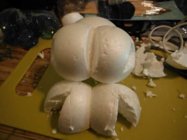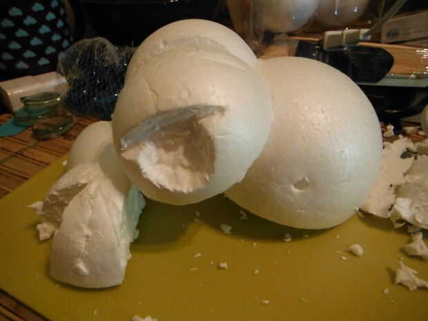 así usted va a necesitar dos bolas de espuma de poliestireno, uno 3inches, el otro 5inches