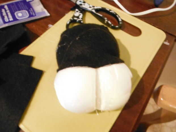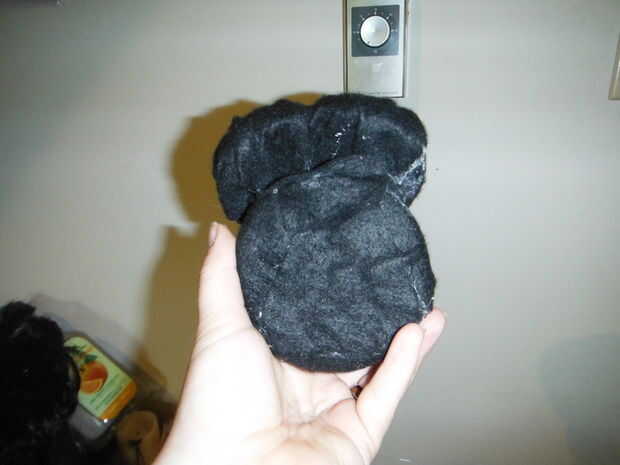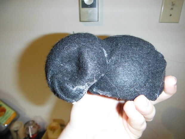es el momento para cubrir la cabeza y el cuerpo con fieltro. fui con negro ya que coincide con el pelo que usaba