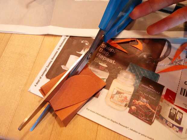 Cortar el papel en forma de signo de exclamación y separar las plumas de papel sobrante.