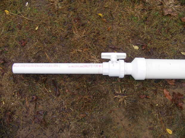 Pegar la tubería de 2" en un extremo de la válvula de agua y pegamento los restantes 2" pieza en el otro extremo. en esa pieza del pegamento del 2" a 4" reductor y luego el tubo de 4"