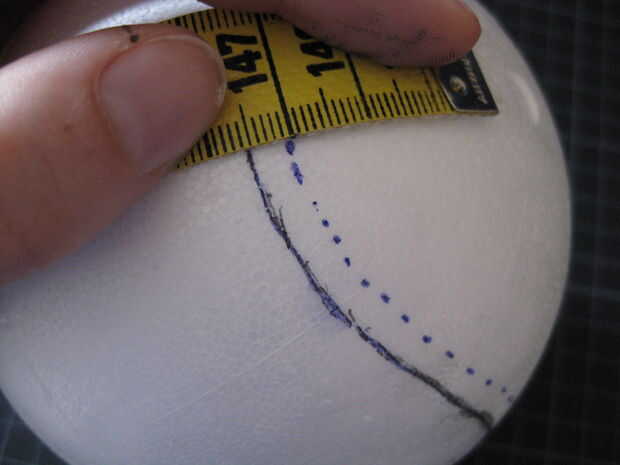 Hacer una plantilla de papel de aluminio ni nada, que se puede colocar la bola y trace el contorno. Luego utilice una regla para trazar la línea de otros.