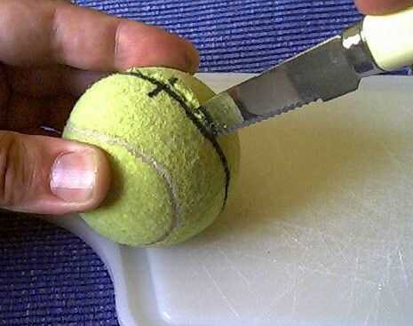 Marca tres pies del trípode en el borde de la bola con un lápiz o pluma.