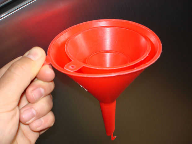 Elegir un embudo que su parte inferior ajusta la abertura creada en el paso anterior. De estos tres embudos que se muestra en la imagen he utilizado uno más pequeño.