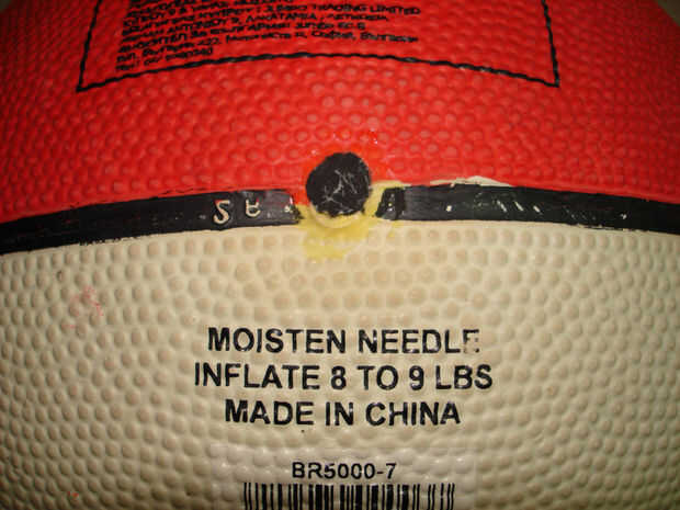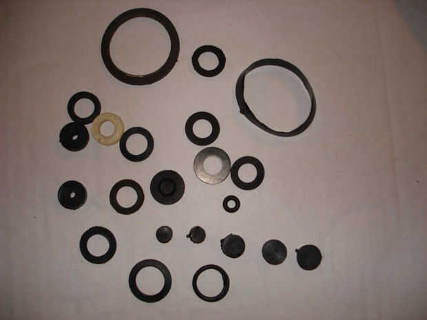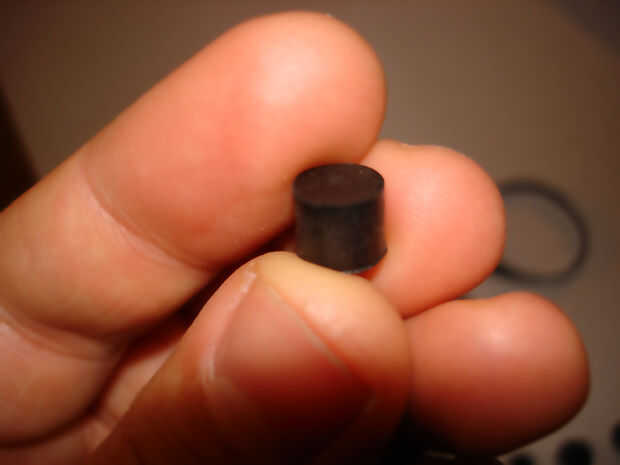 Ahora tienes que sellar la abertura. Cuando yo estaba construyendo mi pelota, busqué mi inventario y encontré entre mi arandelas de fontanería estas arandelas cilíndricas elástico sólidas. Tuve suerte porque ellos podrían encajar perfectamente en el agujero. No me imagino el uso convencional de este tipo de cosas. Tal vez si uno de los lectores sabe algo, él o ella puede iluminarme más.
