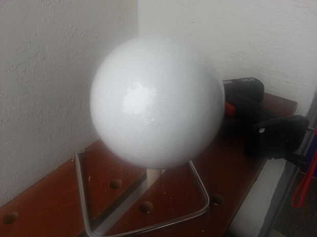 Simplemente fije el pasador, centro de la bola de espuma de poliestireno y empujar hacia la espiga. Si usted cumple con la resistencia, puede utilizar un cuchillo para sacar la espuma de poliestireno adicionales hasta que el balón está lo suficientemente lejos en la espiga para ser estable.