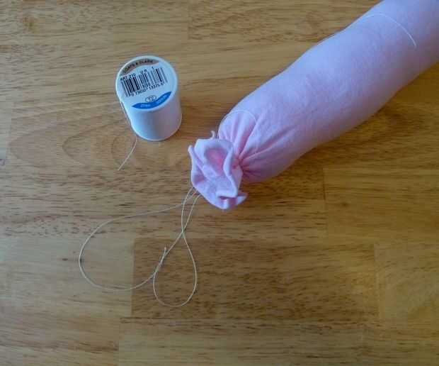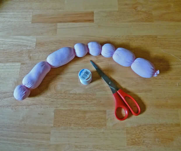 Una vez que tienes las gomas que desee, asegure las secciones con hilos y nudos. Tire de las medias para mover el bateo de las divisiones para que gire más fácilmente.