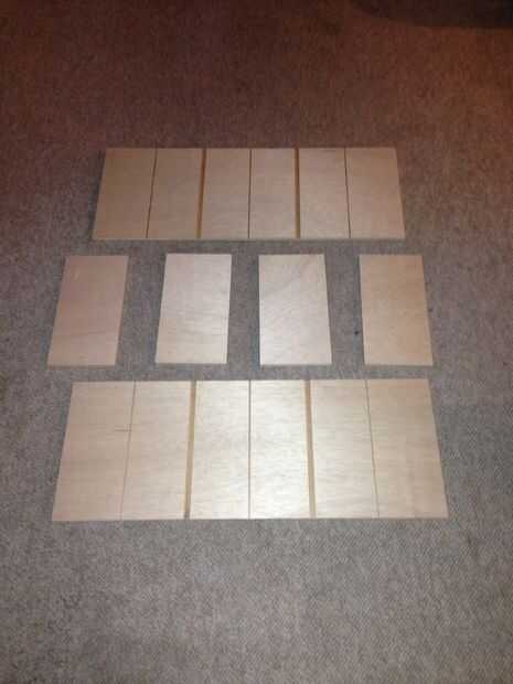 Cortar ranuras similares en algunas de las otras piezas como sigue:
