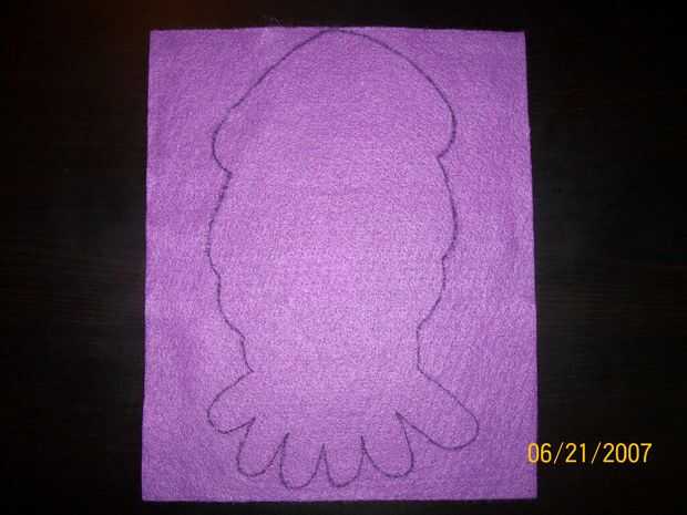 Trazar la forma del animal deseado sobre el tejido. Rastro dos de la forma animal principal de la parte delantera y la espalda. No olvides también rastrear cualquier decoración como los ojos.