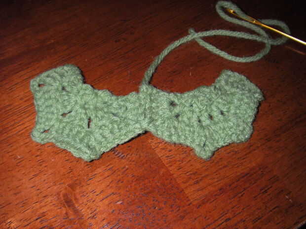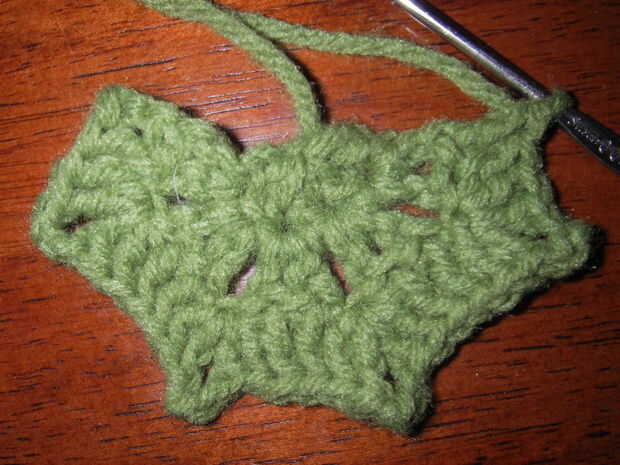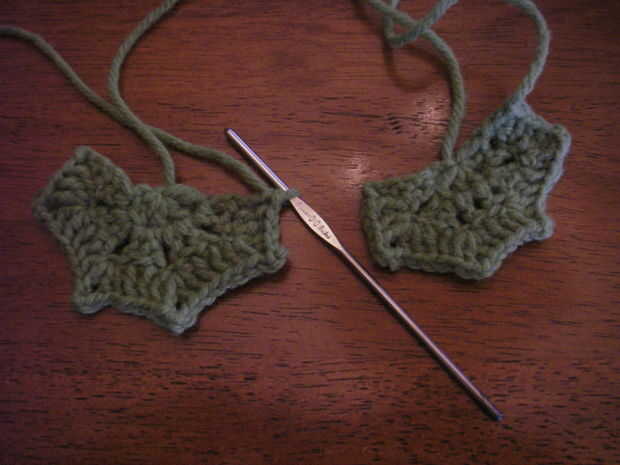 BIND off. Pellizcar las esquinas para crear la forma de "alas de murciélago". Coser juntos las dos alas. Coser el cuerpo y la armadura en exceso de hilados.