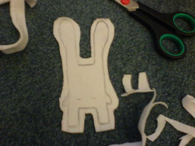 Antes de empezar a cortar la tela, poner otro trozo de tela debajo de él, así que usted wonâ tiene que rehacer todo para la parte trasera del peluche. Ahora---> corte siguiendo las líneas rojas:)! PD: sé!!!! Que miró feo al principio ~ pero después terminé... no podía ver todo más lindo.