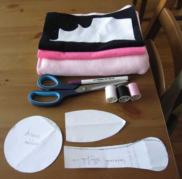 -retazos de fieltro blanco o paño grueso y suave + hilo