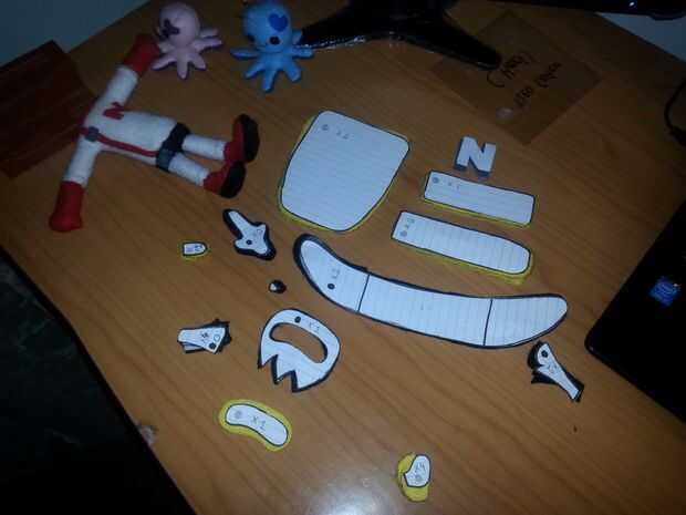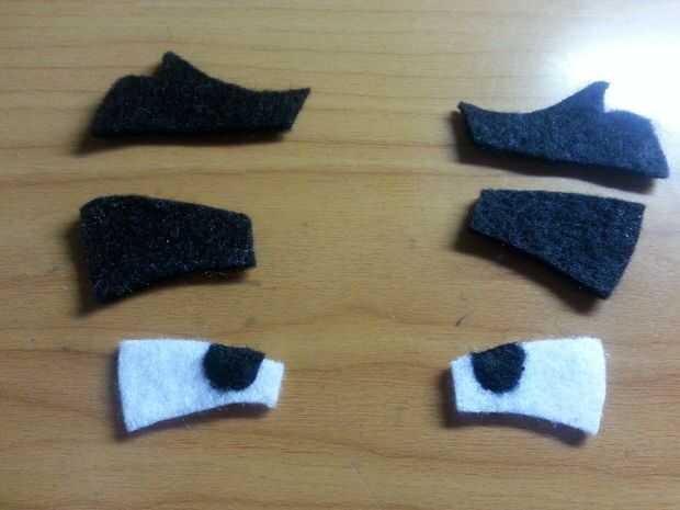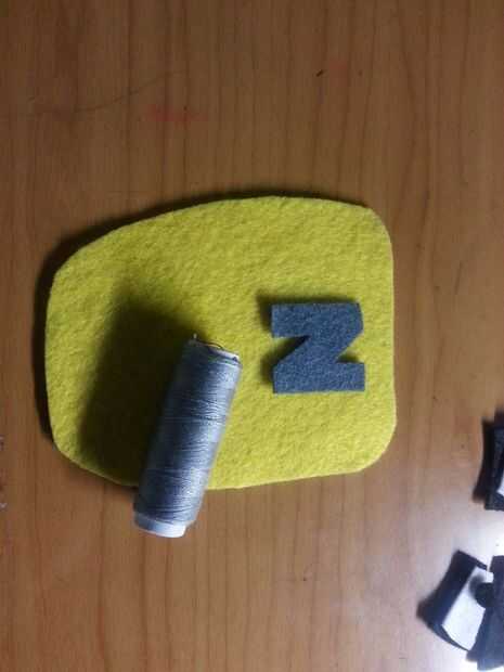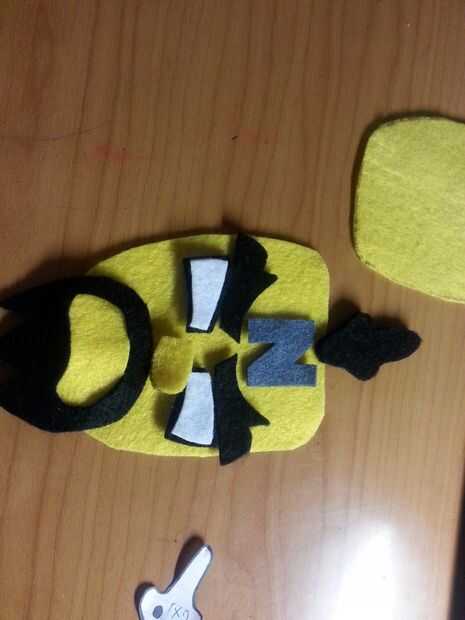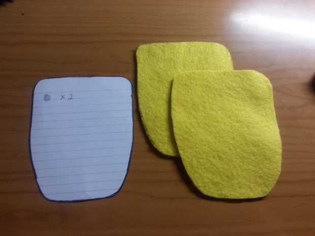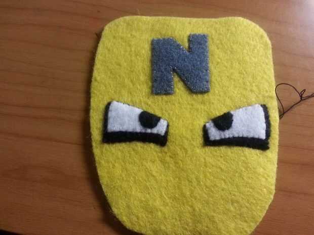Comience por colocar todas las piezas faciales sobre la cabeza de amarillo para ver que todo lo que necesita para ser cosidos