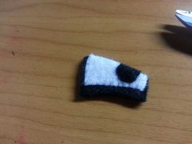 Comenzar con la costura la N en la frente. Luego coser a la pupila en la parte blanca del ojo y luego coser el blanco sobre el negro del ojo, asegurándose de que usted deje una línea negra alrededor del exterior