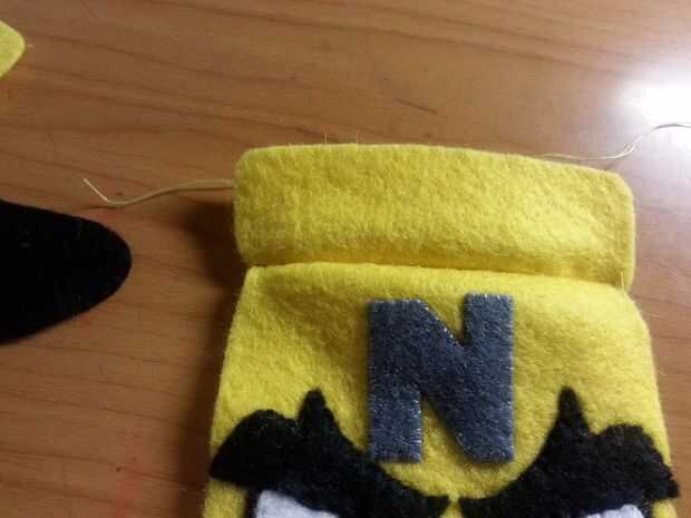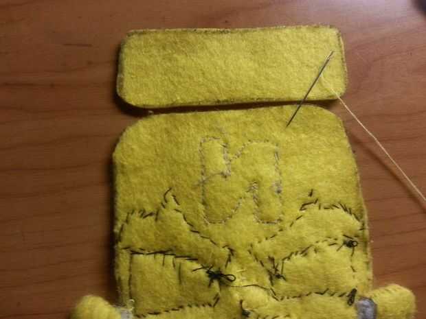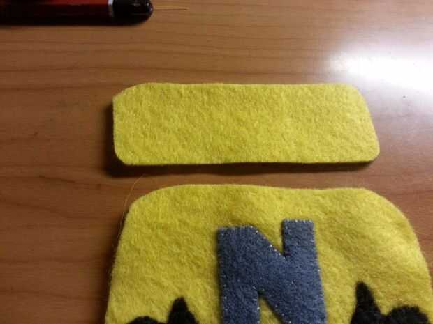 Empezar por coser el rectángulo más pequeño en la parte superior de la frente