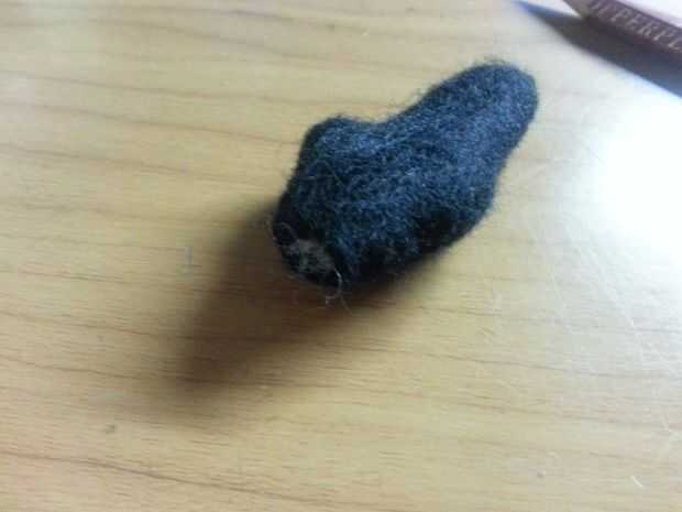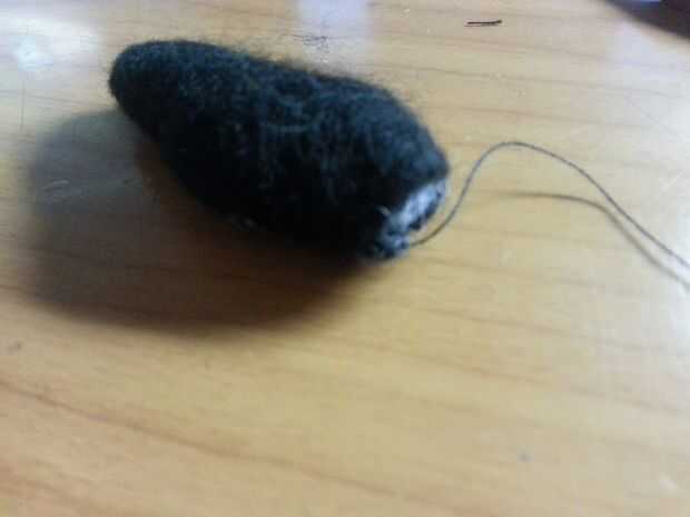 Ahora es también el tiempo que puede coser el pelo que se pega para arriba en la frente. Pespunte alrededor, dejando un espacio. Luego voltear la manera correcta utilizando un lápiz y esas cosas. Utilizar una puntada escalera para cerrar para arriba. Hacer unos nudos en el pedazo de cabello en la parte inferior y fíjela a la parte superior de la frente, entre la costura de la cabeza y la pieza del rectángulo pequeño