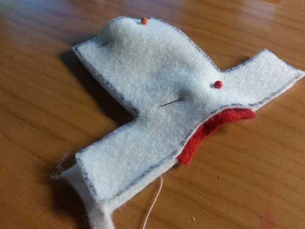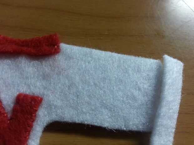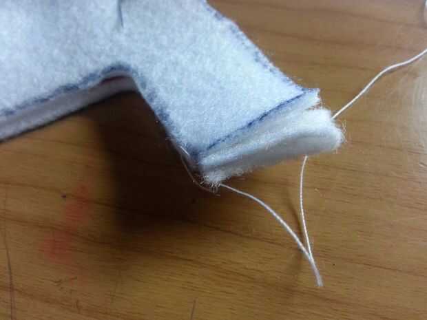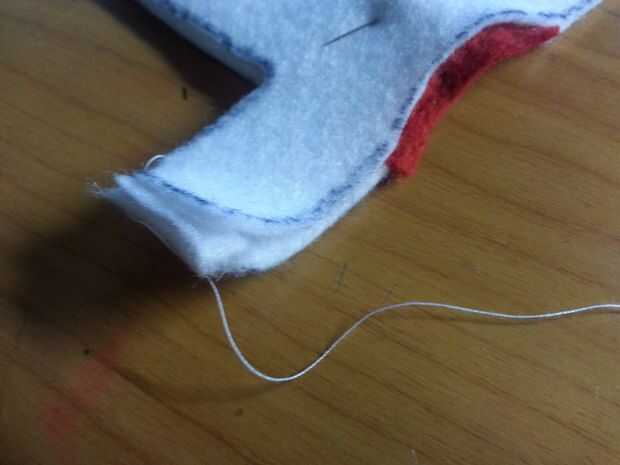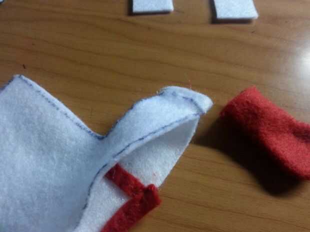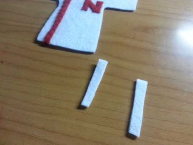 Continuación a coser las dos tiras blancas pequeñas en la manga del cuerpo