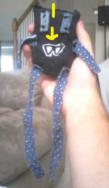 Tomó alrededor de una pulgada de la costura del jean para los ojos. inserta la aguja por la parte superior del ojo, entré en el cuerpo y salió por el ojo. nunca salir del cuerpo entre las inserciones. até el hilo tres veces en cada extremo para asegurar que el hilo permanece en el.