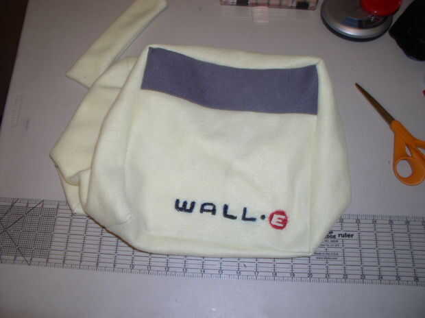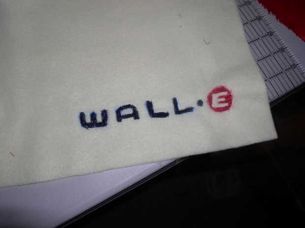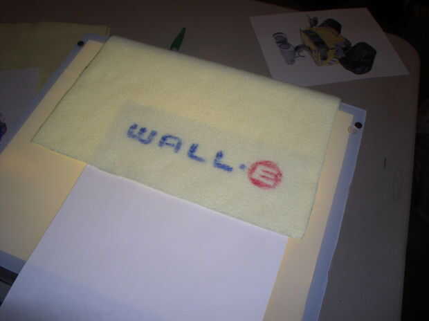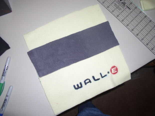Una de estas plazas tendrán una tira de tres pulgadas de color gris en la parte superior. En esa misma plaza, usted querrá agregar el logo de Wall-e en la esquina inferior derecha. Bordó, pero hay multipleotherways para lograr lo mismo.