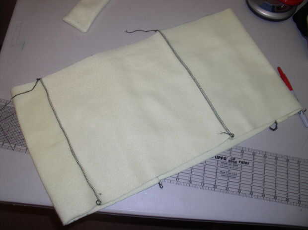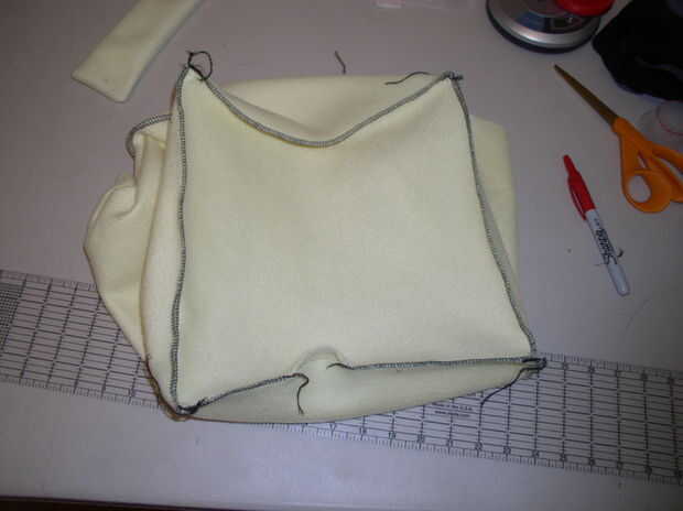 Luego cosí cuatro de ellos juntos para hacer un tubo que he añadido la parte superior e inferior a. Asegúrese de que dejar una pequeña abertura para rellenar.