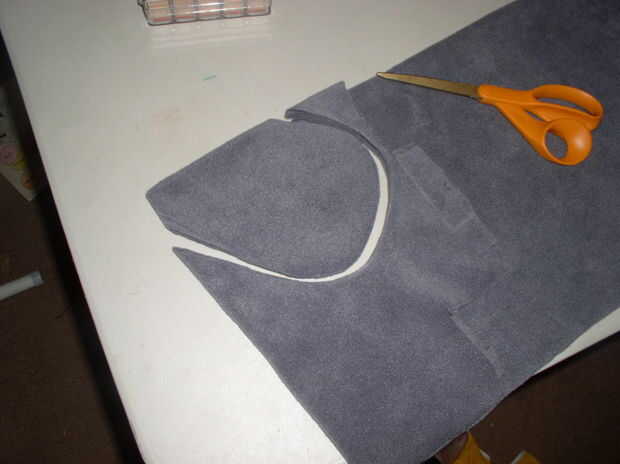 El cuello se hace de una pieza de 5" por 10". Mina hizo mayor que la inicialmente y tuvieron que cortarlo.
