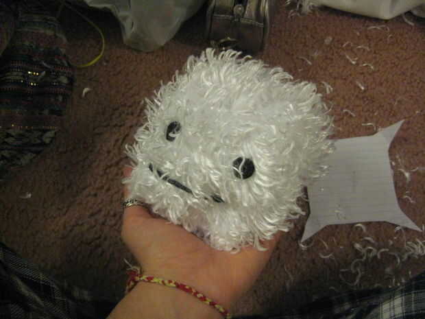 a través del agujero abierto, llene su monstruo con relleno de fibra.