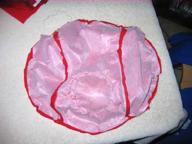 Para sujetar la nariz, la puse en la cara donde quería ir, entonces dobla ligeramente el borde bajo y fijado en lugar. Usé una volado puntada para coser la nariz desde el frente. 3/4 de la manera alrededor de la nariz, relleno con trozos de camisa pequeña, luego continuó cosiendo hasta que fue cerrada.