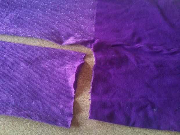 Usando tijeras corte a lo largo de la parte superior de ambas de las piernas, donde la pierna une al cuerpo de las medias. Las piernas de las medias van a ser el cuerpo de la serpiente. No necesita la parte del cuerpo de las medias.