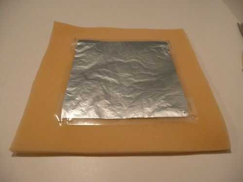7. cortar un cuadrado de 20 cm de una pieza de lámina de plástico flexible (pero no demasiado floja!). Cubrir con papel de aluminio.