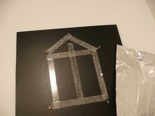 5. corte un pedazo de papel de aluminio en la misma forma que la figura con cinta. Suavemente lo pegue a la hoja. Esta es una parte del interruptor.