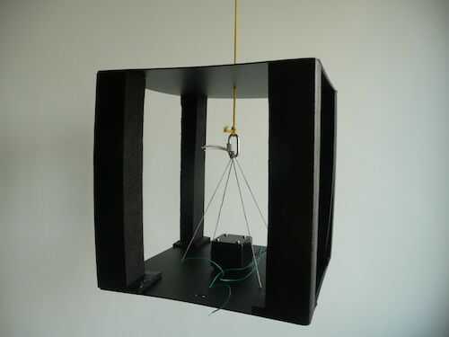 9. pegar un pedazo de velcro autoadhesivo en el centro del lado superior de la hoja inferior. Pegar el otro lado en la parte inferior del módulo de sonido.