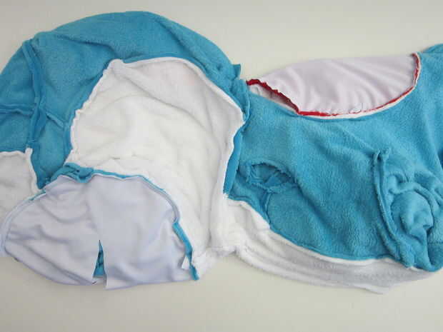Ambas aberturas del cuello, lados del derecho juntos, la Alinee las costuras.