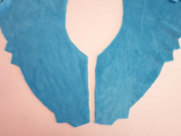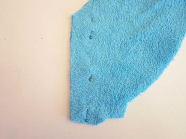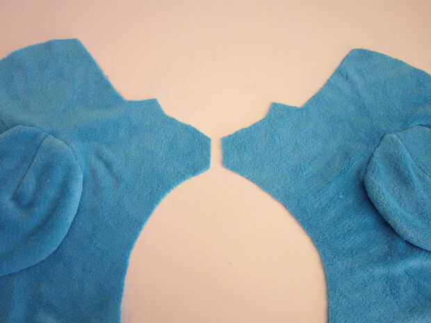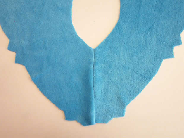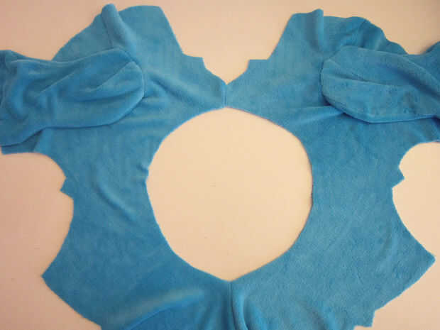 Prender juntos los derechos de ambas piezas del cuerpo en la cola y espalda cuello. * Ver imágenes *
