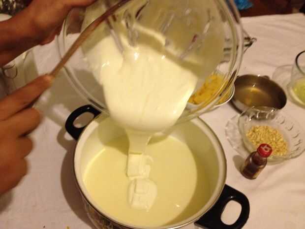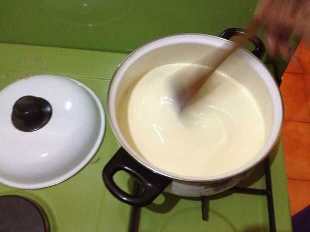 5. Revuelva a fuego lento medio continuamente por sobre 13-15 minutos, hasta que la crema espese. Deje que se enfríe.