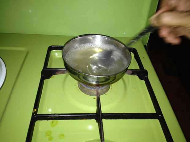 6. disolver la gelatina ablandada sobre calor suave hasta que desaparezcan todos los granos. Dejar enfriar un rato.