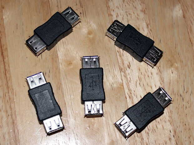 Necesitamos 5 adaptadores USB A hembra a hembra. Esto nos dará 10 enchufes de almacenamiento USB - suficiente para la mayoría de las personas. Si más necesitas comprar más adaptadores.