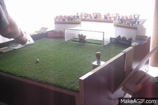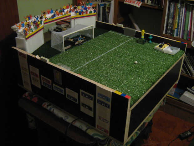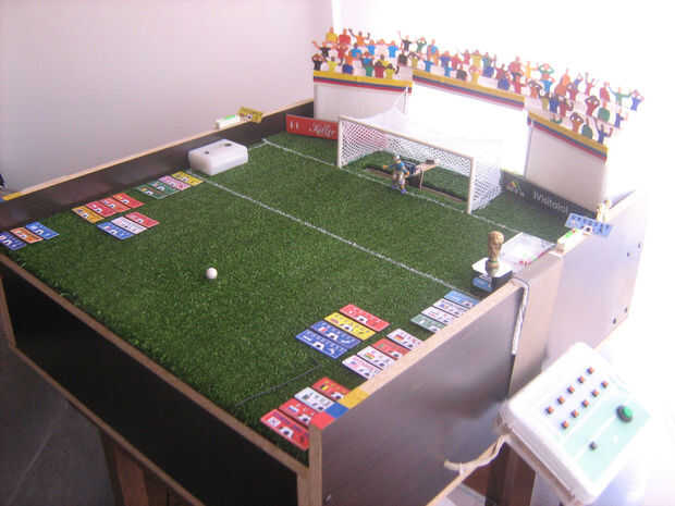 Este es un juego interactivo de electromecánico situado entre la electrónica y el mundo real, haciendo parte de la acción. Guardar usando un dispositivo de control de metas y patear la pelota con los dedos.