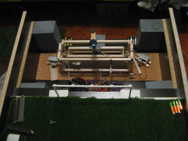 Entre los 2 primeros tableros abrimos un agujero rectangular para mover la base del portero.