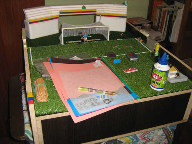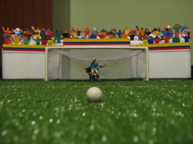Finalmente, añadimos algunos accesorios a juego con el fin de contar goles, coger la bola después de cada retroceso de la pena, dejar a otros saber que equipos están implicados, las tribunas se llenan de gente y dejar el trofeo visible, entre otros detalles.