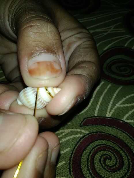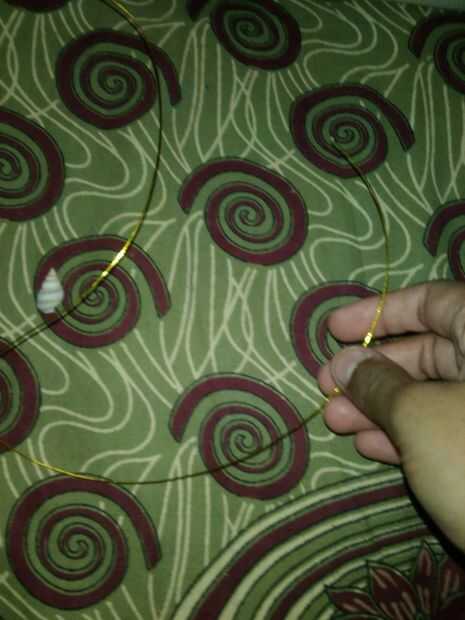 tomar un alambre de joyería y empezar a envolver en concha.