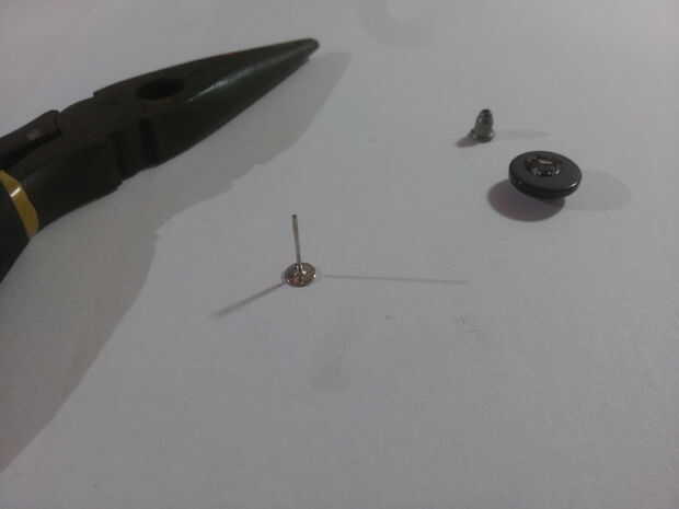 Como se puede ver en la foto de arriba tenemos solamente la parte metálica de la pendiente. Utilice pinzas para desmontar el pendiente. Si utilizas un pequeño pendiente plana puede omitir este paso.