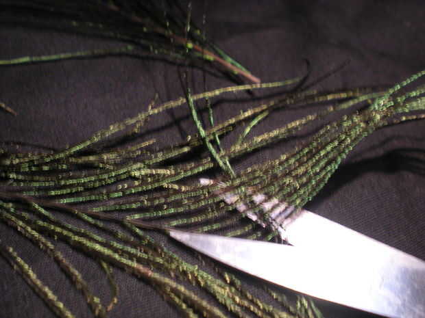 Antes de hacer cualquier cosa que usted necesita para cortar las plumas de la franja de raquis (eje principal plumas).
