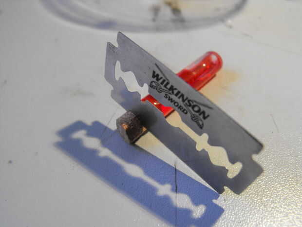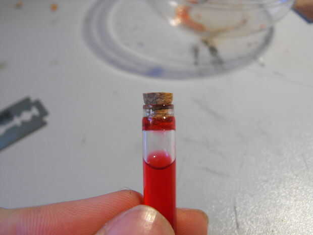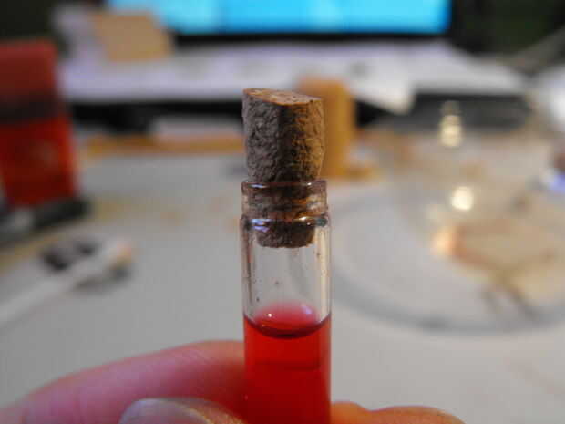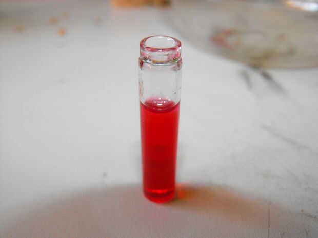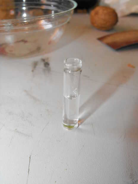 Llenar el frasco un poco (aproximadamente 2/3) con alcohol, de caer en algún colorante. Enchúfelo en la clavija (debe ser apretado) que corte a medida.