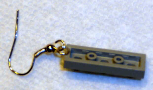 Una vez abierto, deslizarse a través del orificio en el lazo que une al bloque de Lego.