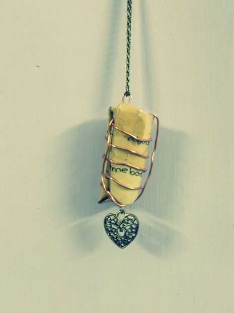 Ahora envuelve con alambre de cobre muy bien. Hacer un lazo para que usted puede poner la cadena a través de él.