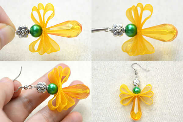 Pendientes Angel naranja por cinta y perla (3 / 5 paso)