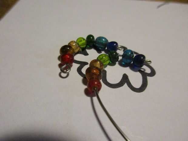 Colóquese las perlas en su orden preferido. A continuación, cierre la parte superior con un lazo. (Deje el cable un poco si vas a la curva el alambre del grano como lo hice. No desea que sus granos al crack)