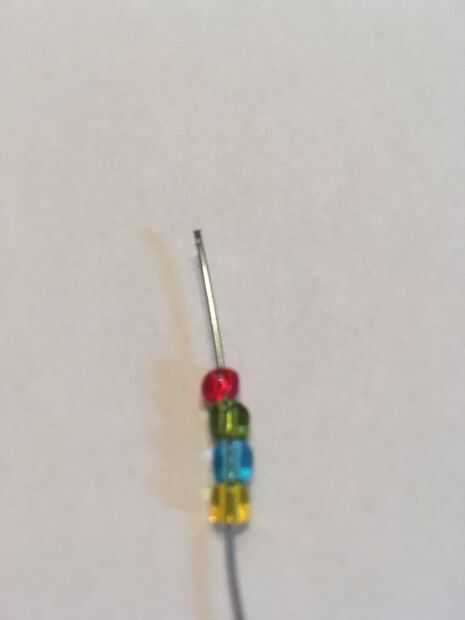 Poner cuatro coloridos abalorios en el alambre. Sea creativo con su elección de colores!