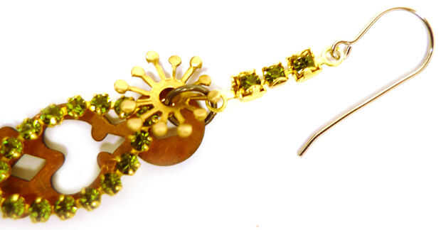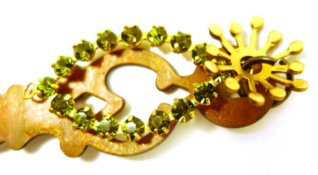 Usando sus alicates de cadena abierta un anillo del salto. Introduzca el anillo del salto mediante la mano del reloj, a través del lazo en un extremo de una navette, uno de los encantos de splat medio y a través del lazo en la parte inferior de la la cadena de cristal de 3. Cierre firmemente.