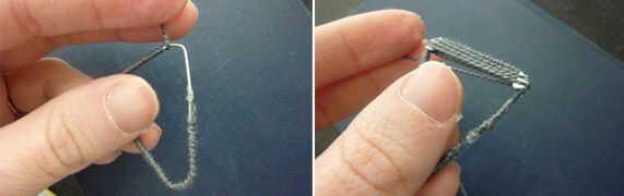 Fig 1: Enrollar la cuerda alrededor de / / Fig 2: comenzar a envolver la cuerda alrededor de la pendiente, asegurado con la puntada de líquido