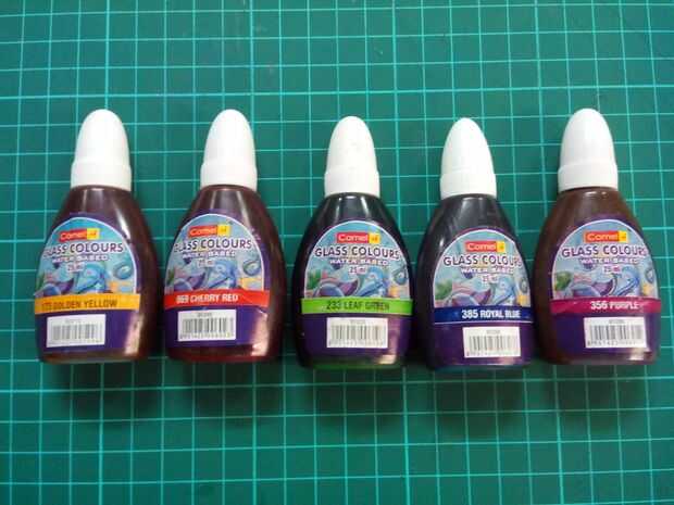 - colores de pintura de vidrio ( fácilmente disponible en tiendas de artesanía)